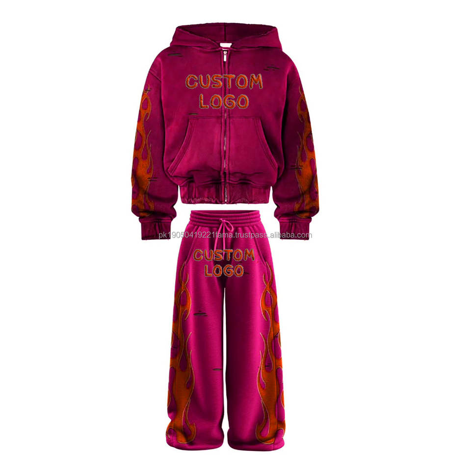 Conjunto de dos piezas OEM con logotipo personalizado para hombre, y cremallera completa Sudadera con capucha, conjuntos de hombre con diamantes de imitación, chándal de terciopelo y algodón en blanco