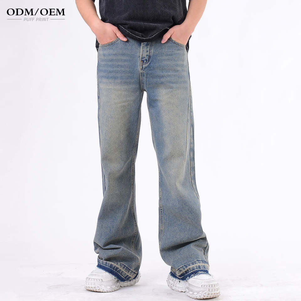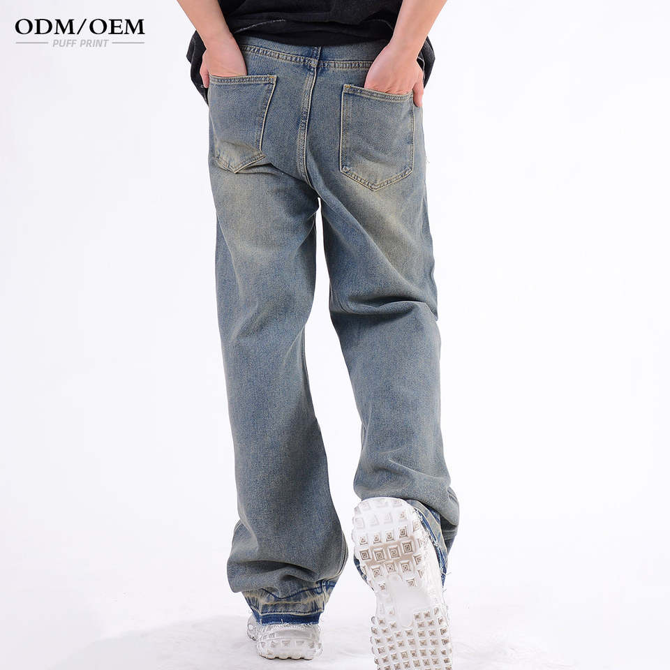 Pantalones Vaqueros de Mezclilla de Pierna Ancha y Corte Recto para Hombre, Estilo Holgado, Lavado Medio Otoñal, Logotipo Personalizado OEM, Método de Tejido de Punto, Tallas Grandes