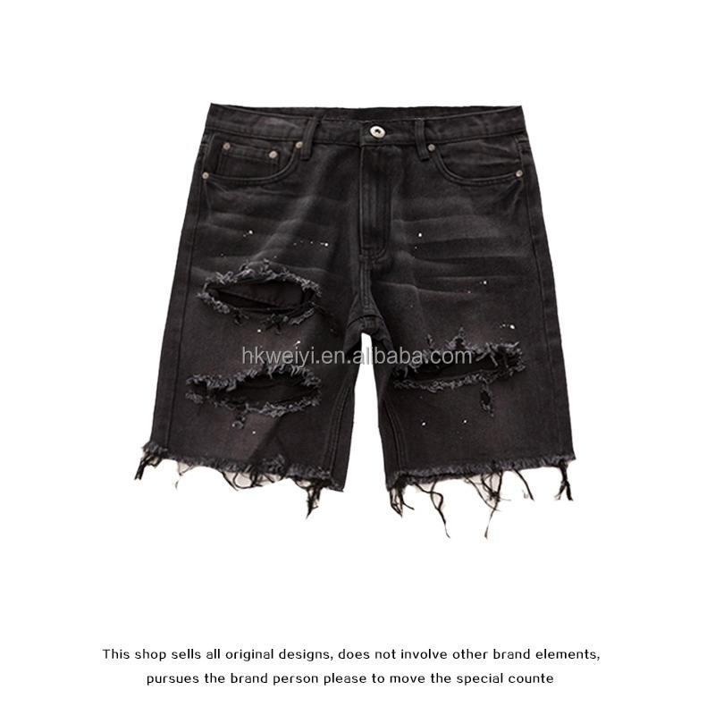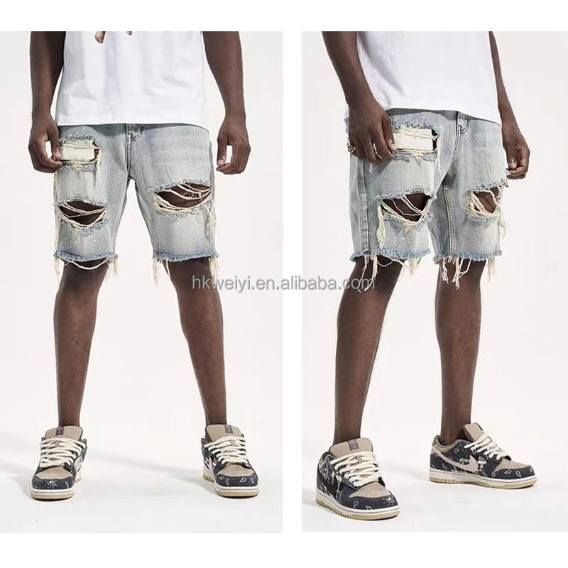 Pantalones Cortos de Mezclilla Desgastados Estilo Vintage para Hombre, con Logotipo Personalizado OEM, Estilo Europeo Americano de Verano, con Bordes Deshilachados