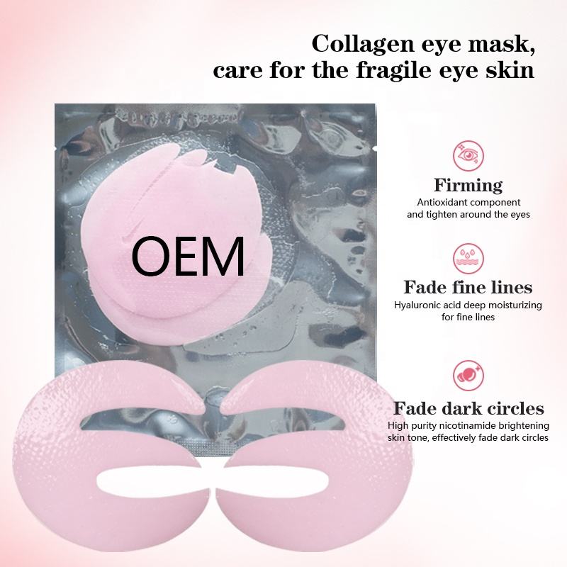 Parches para Ojos en Forma de E de Color Rosa con Logotipo Personalizado OEM, Mascarilla de Ojos de Biocolágeno PDRN para Ojeras e Hinchazón, Productos para el Cuidado de la Piel B2B