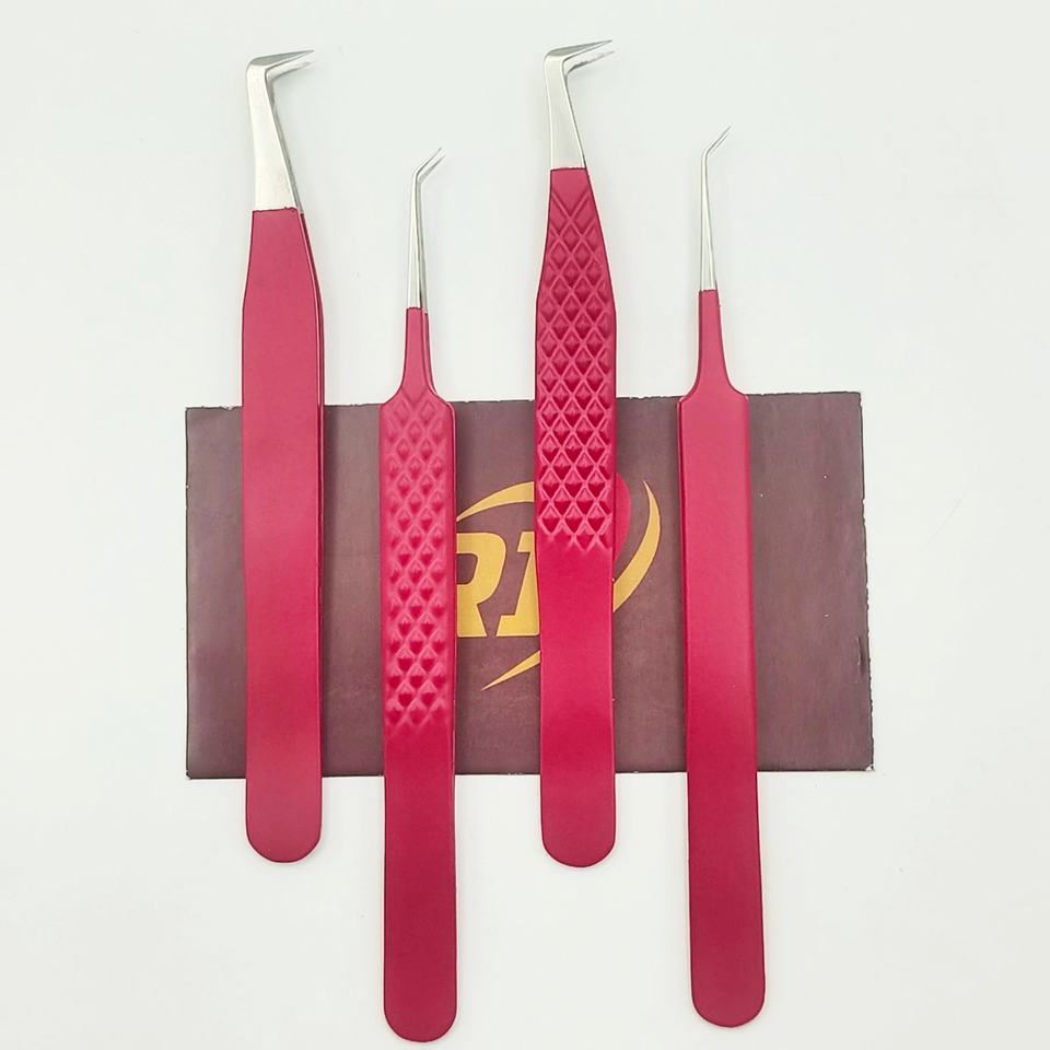 Pinzas para extensión de pestañas de acero inoxidable color rojo con logotipo personalizado OEM para salón de belleza, venta al por mayor, punta corta de 4 mm.