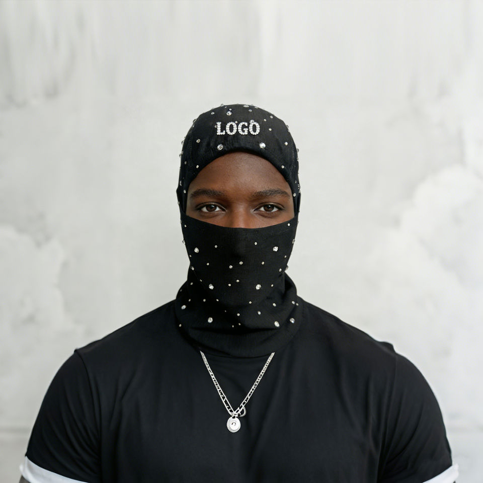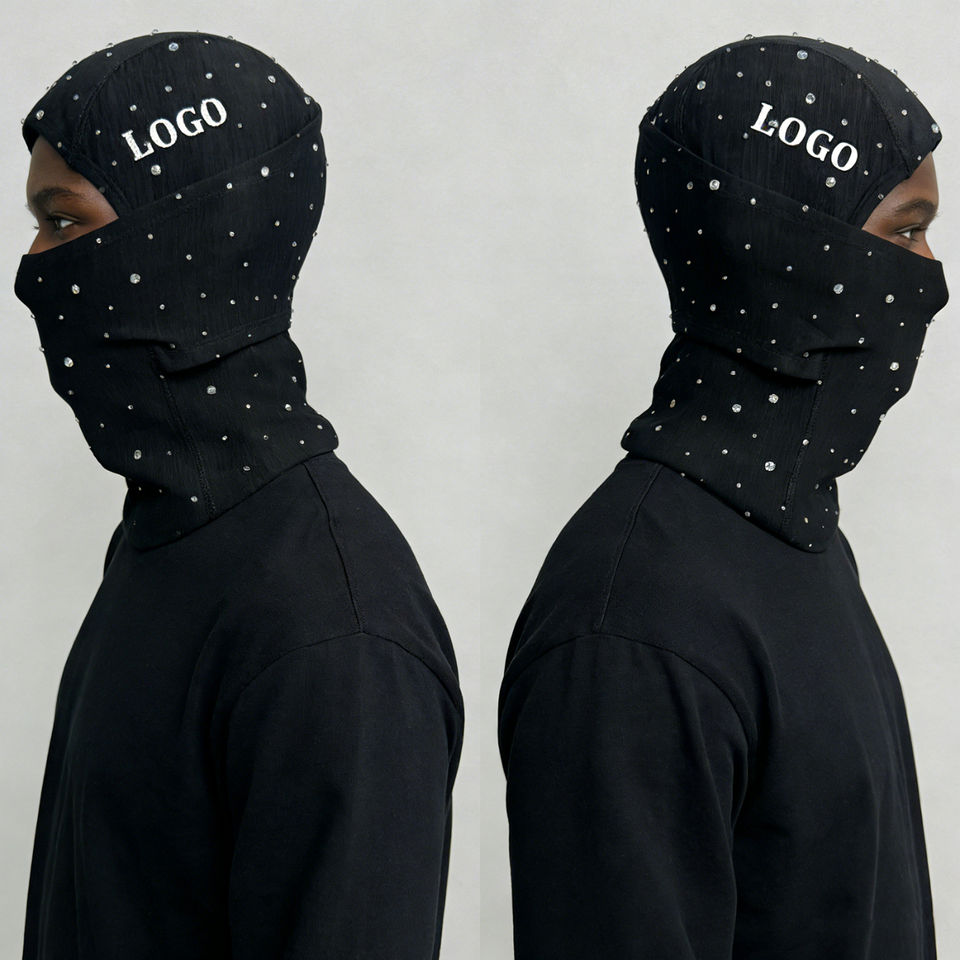 Pasamontañas con Pedrería y Logotipo Personalizado OEM, Unisex, con Cristales Brillantes, para Ropa Urbana, Moda Casual, Venta al Por Mayor B2B