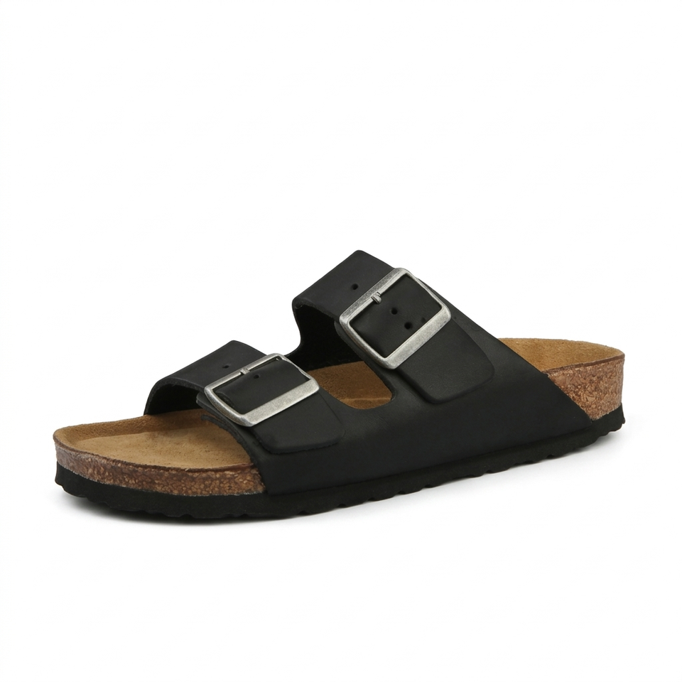 Sandalias Estilo Arizona de Cuero Vacuno de Primera Calidad con Logotipo Personalizado OEM, Plantilla de Corcho Premium, Directo de Fábrica, para Hombre y Mujer