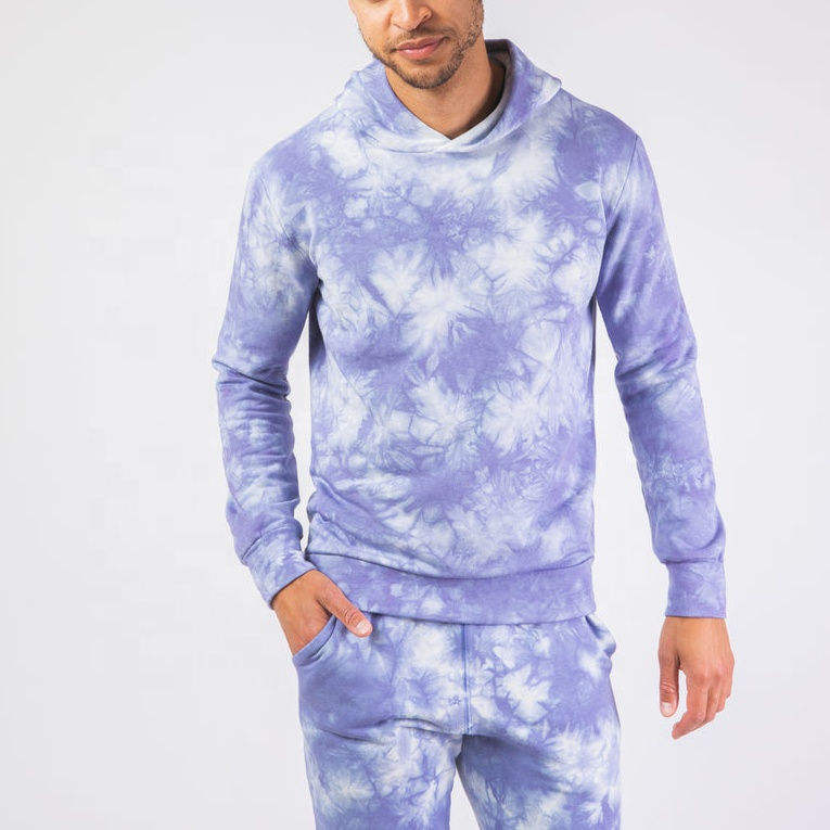 OEM por encargo Tie Dye Print ácido lavado pulóver chándales de peso pesado chándal francés Terry chándal de gran tamaño para los hombres