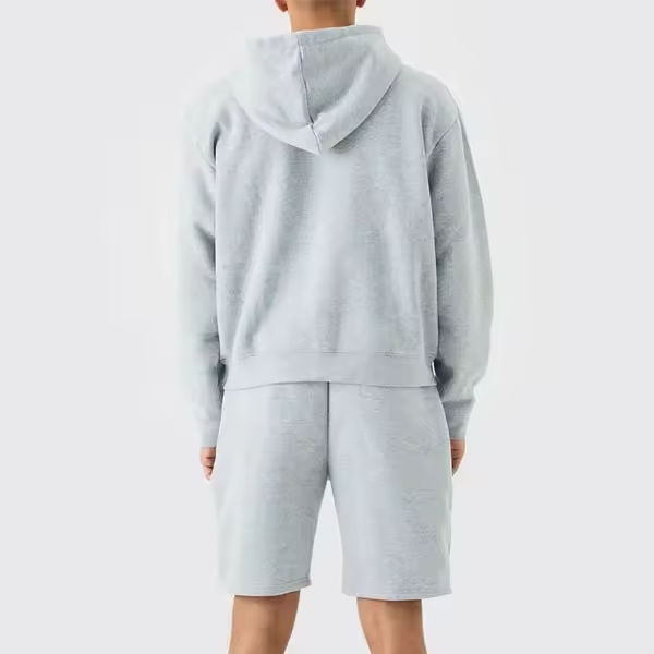 Conjunto de pantalones cortos y sudadera con capucha y cremallera de color contrastante para hombre personalizado OEM conjuntos de pantalones cortos y Sudadera con capucha de dos piezas para hombre