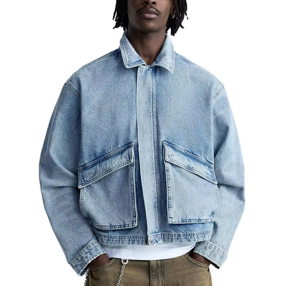 Chaqueta Vaquera de Mezclilla Personalizada para Hombre, Estilo Desgastado, Abrigo de Algodón, Chaqueta Vaquera Vintage Lavada de Talla Grande