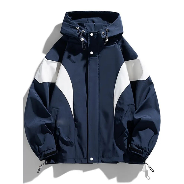 OEM personalizado azul marino ligero impermeable cortavientos chaqueta con capucha para hombre Cordura suave Shell a prueba de viento resistente al agua sólido