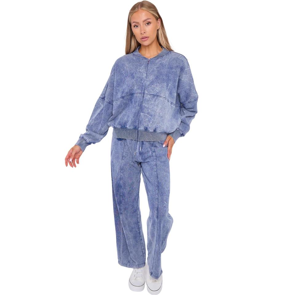 Nombre del producto:Mujeres Zip Up ácido lavado chándal azul