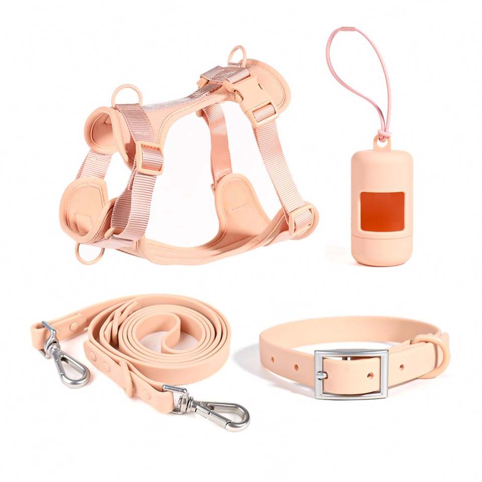 Conjunto de Arnés para Perro con Correa Recubierta de PVC Personalizada OEM, Collar Ajustable Impermeable, Porta Bolsas para Excrementos, Kit para Pasear