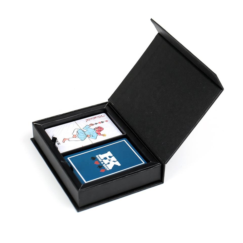 Juego de cartas de póker de plástico PVC personalizado, juego de cartas de póker con imán de cartón, caja de Color