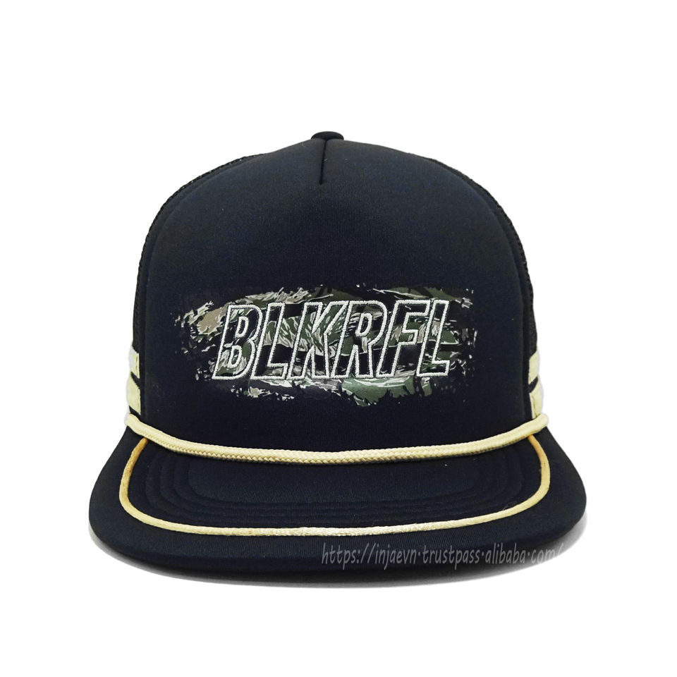OEM impresión personalizada Camo Logo espuma camionero sombreros plano Bill cuerda personalizada 5 paneles de rayas personalizadas en malla gorras deportivas