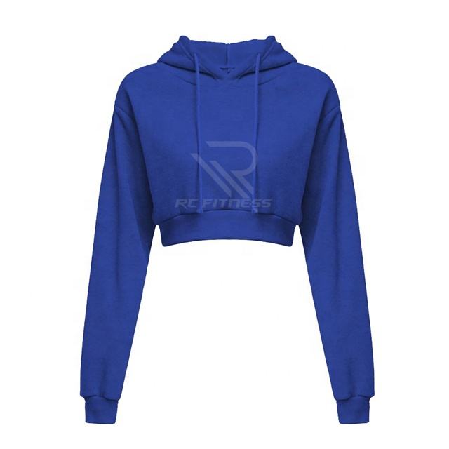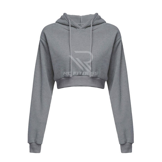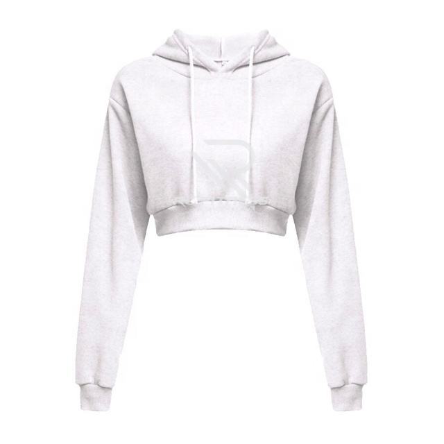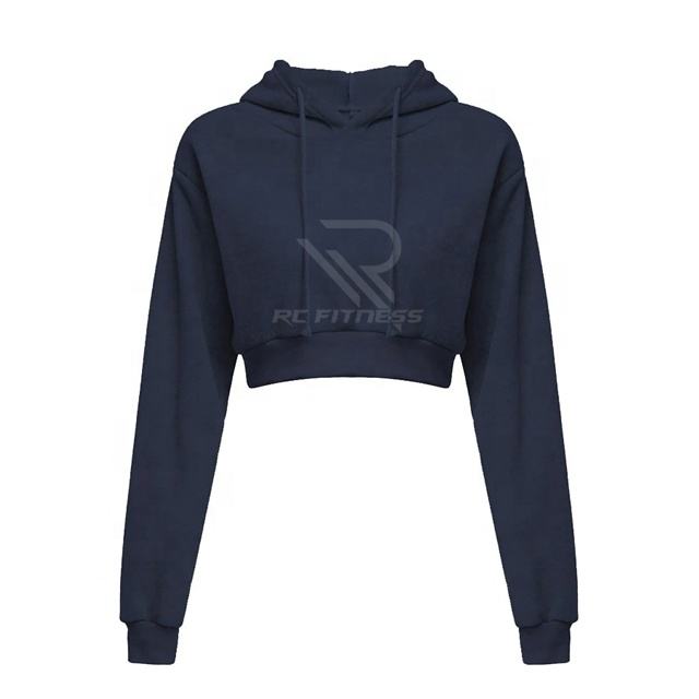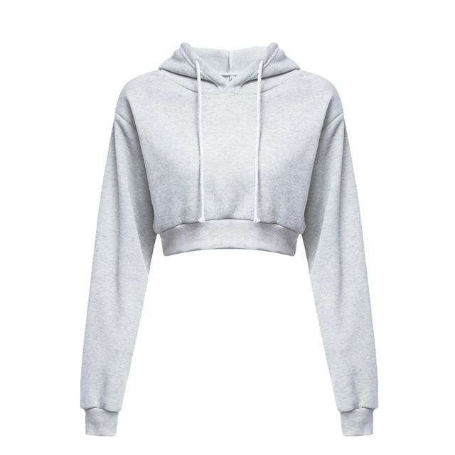 Sudadera con capucha corta OEM personalizada para mujer, de manga larga, casual, con hombros descubiertos, para gimnasio y entrenamiento