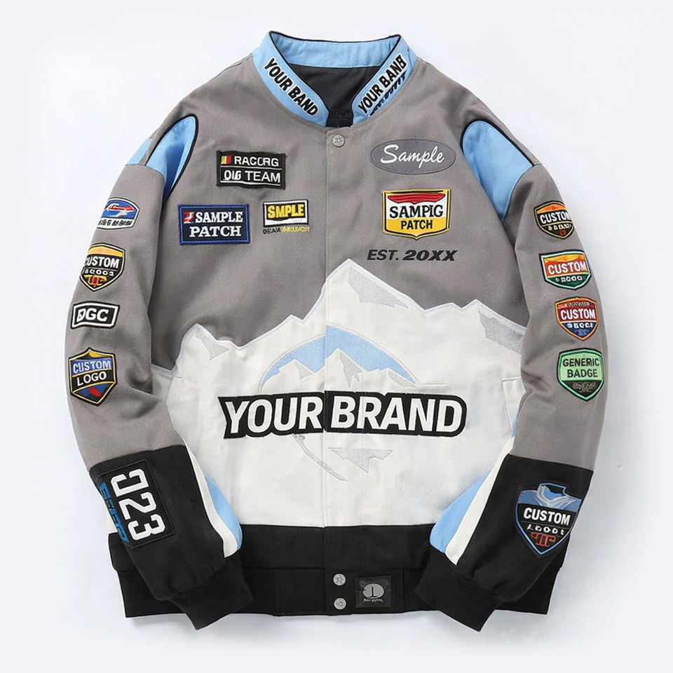 Chaqueta Varsity de Carreras Personalizada OEM, Chaqueta Bomber con Parches Bordados de Primera Calidad, Estilo Deportivo Urbano