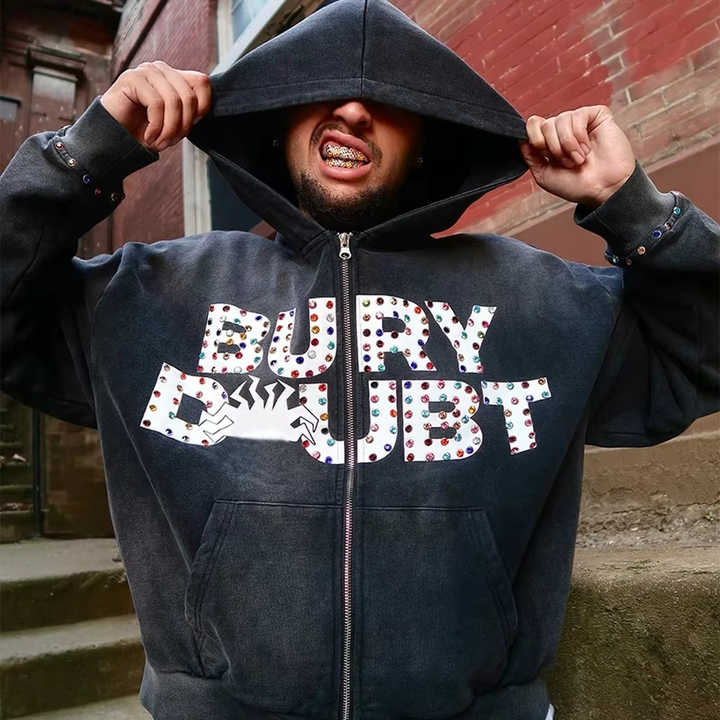 Palabras clave:Sudadera con capucha para hombre con pedrería personalizada