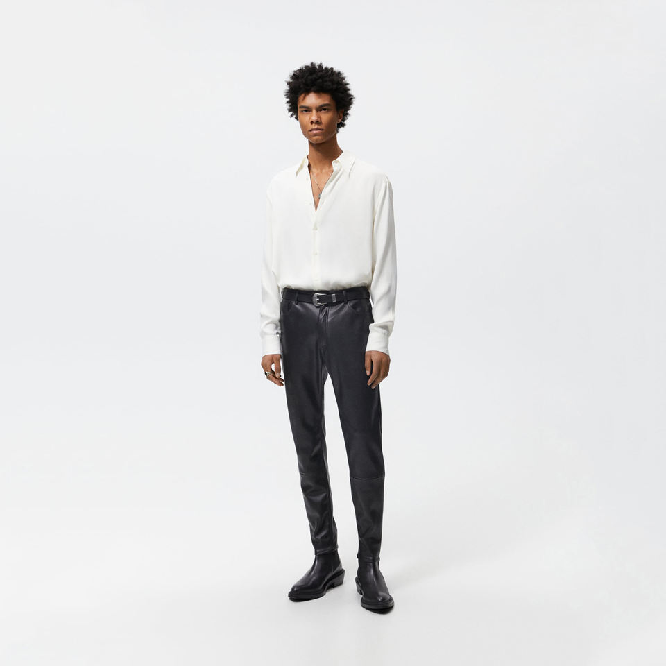 Pantalones de cuero OEM personalizados de cintura media, peso medio, transpirables, estilo urbano, con bolsillos laterales, lisos, de pierna recta para hombre