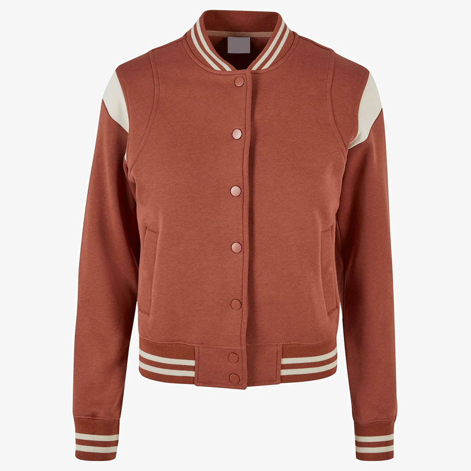 OEM personalizado de color sólido de manga larga Varsity chaqueta para las mujeres última llegada al por mayor llano en blanco Varsity bordado