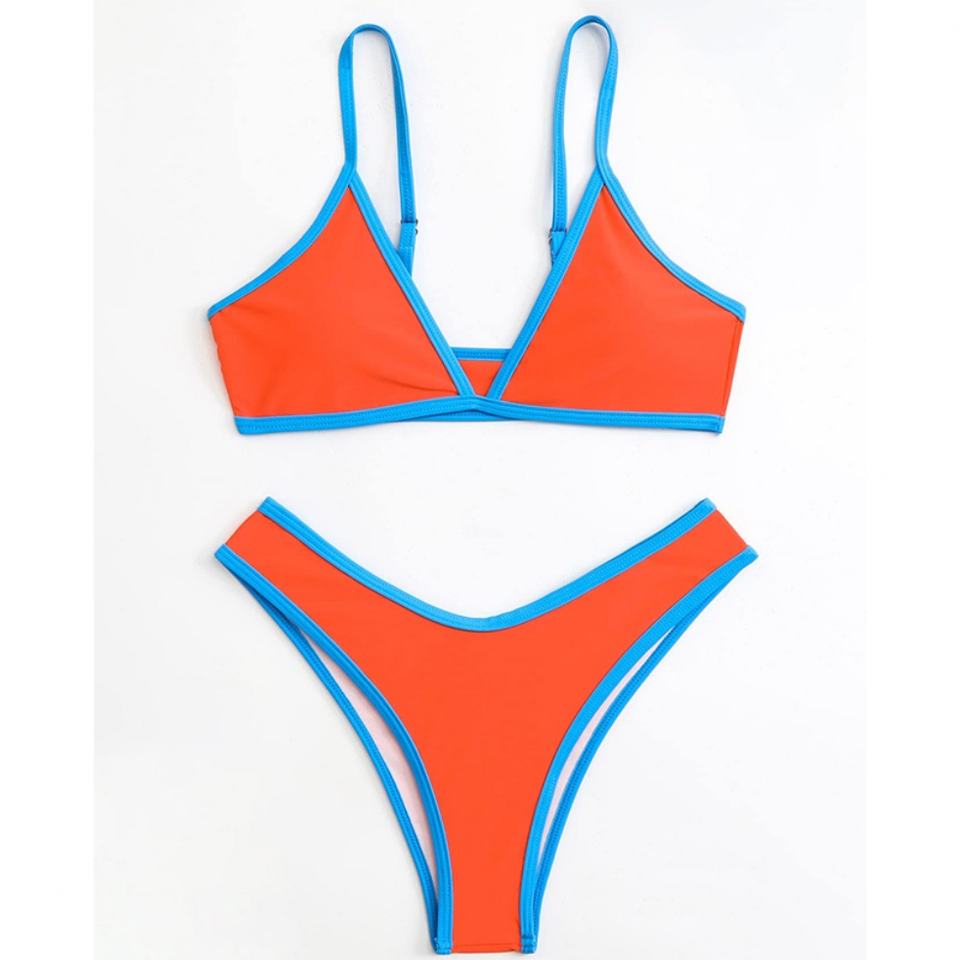 Conjunto de Bikini de Dos Piezas con Top Halter Push-Up Sólido Personalizado OEM y Tanga de Secado Rápido
