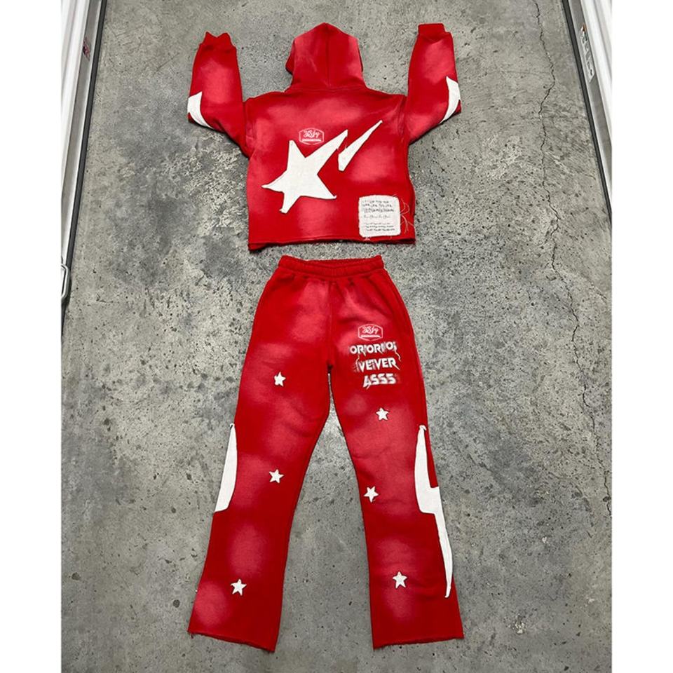 Conjunto de Sudadera con Capucha y Pantalones Deportivos OEM Personalizados con Estampado, Apliques, Bordados, Lavado Ácido, Ecológicos, de Peso Pesado y Ajuste Regular