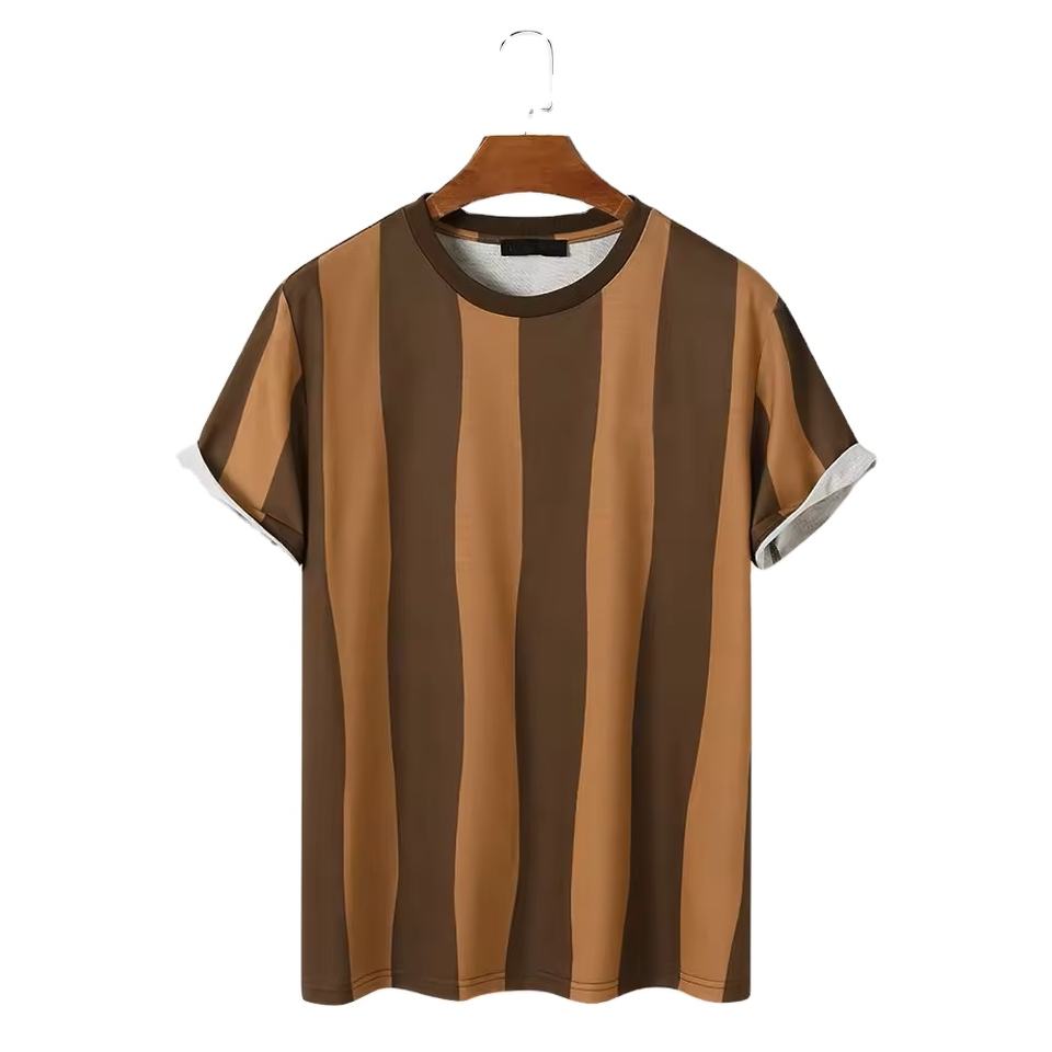Camisetas personalizadas OEM con diseño de rayas para hombre, camiseta informal ligera con logotipo personalizado, 100% poliéster, corte holgado, CP-M-TS-04