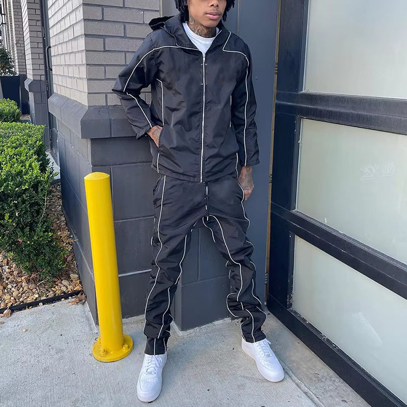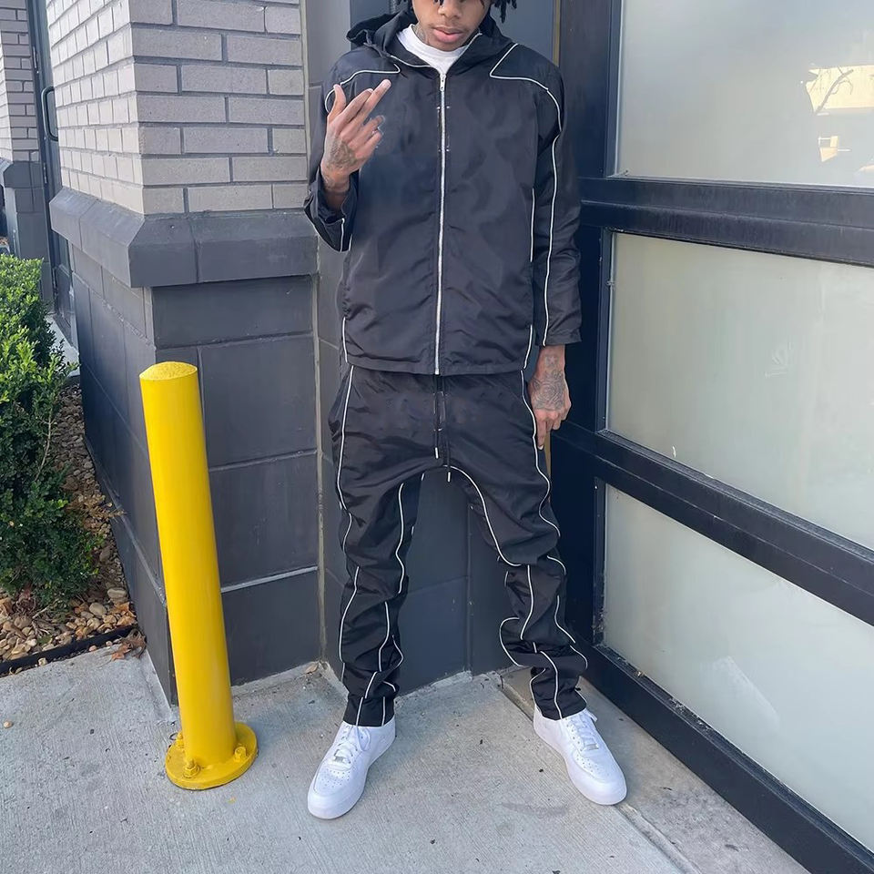 Conjunto Deportivo Personalizado OEM de Dos Piezas, Pantalones de Nylon, Chaqueta con Cierre, Chaqueta Cortavientos, Conjunto Deportivo para Hombre