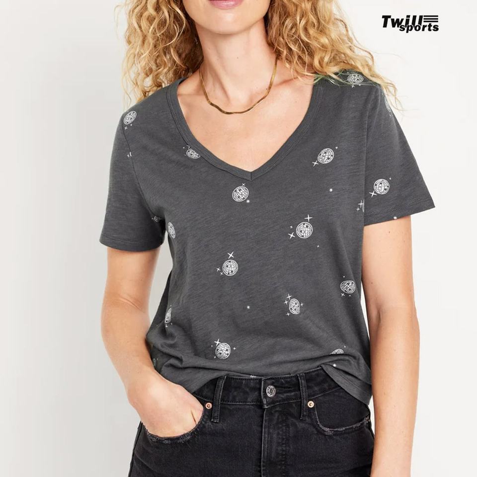 OEM personalizado cuello en V manga corta transpirable secado rápido 100% algodón camiseta de las mujeres con logotipo personalizado y colores 2024