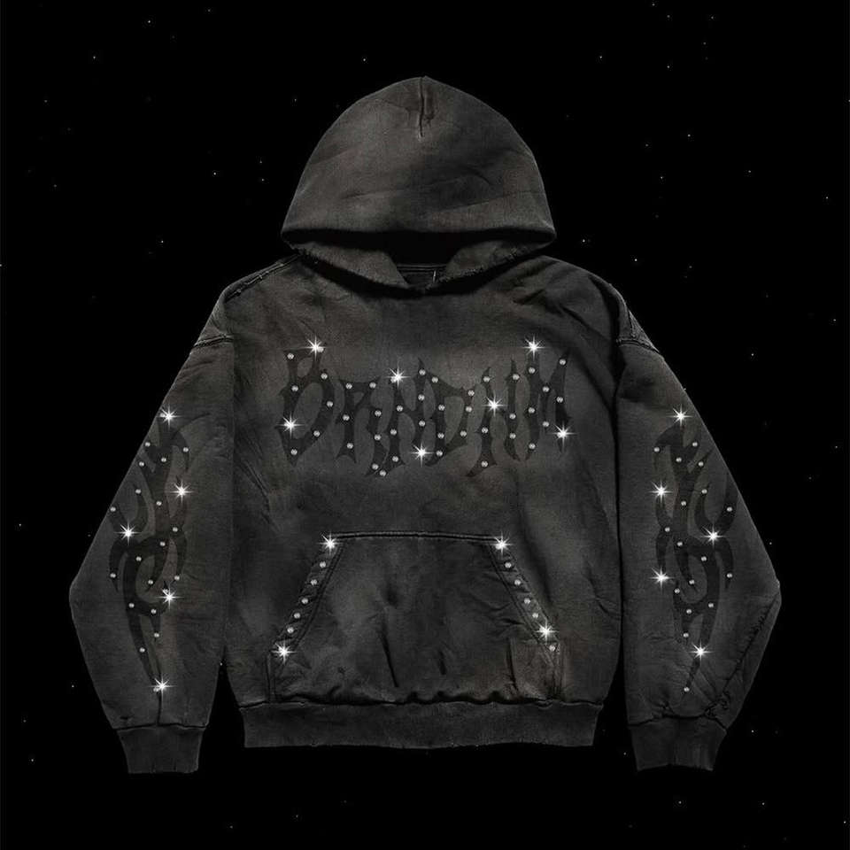 Conjunto de Sudadera con Capucha y Pantalones de Chándal de Forro Polar Vintage Personalizado OEM para Invierno, con Pedrería, Lavado Ácido, 100% Algodón, de Secado Rápido, Transpirable, Estilo Casual