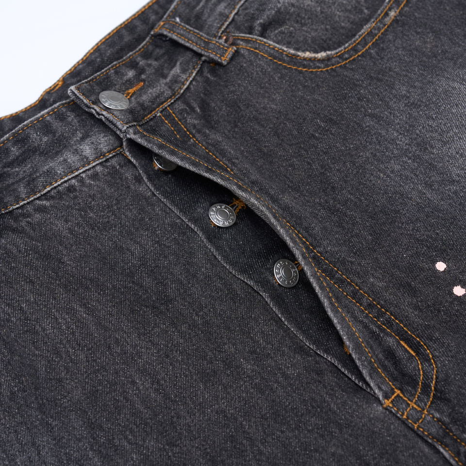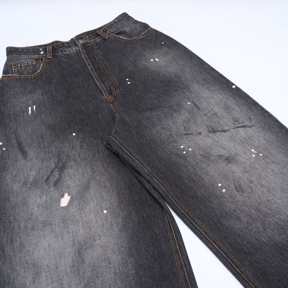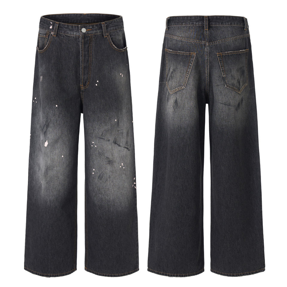 Jeans de Hombre Estilo Y2K, Corte Recto, Color Negro Lavado, Acabado Vintage, Personalizados OEM