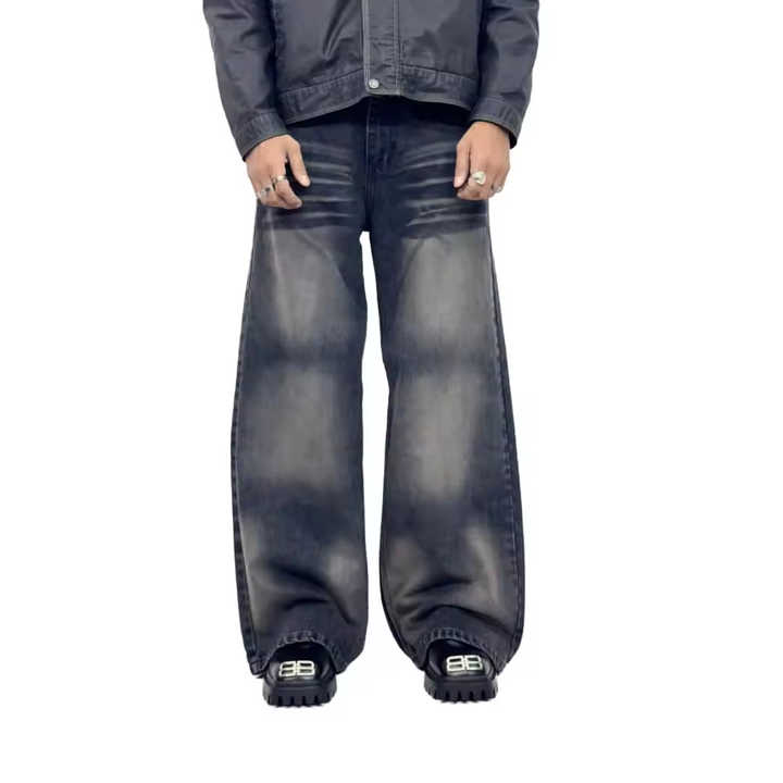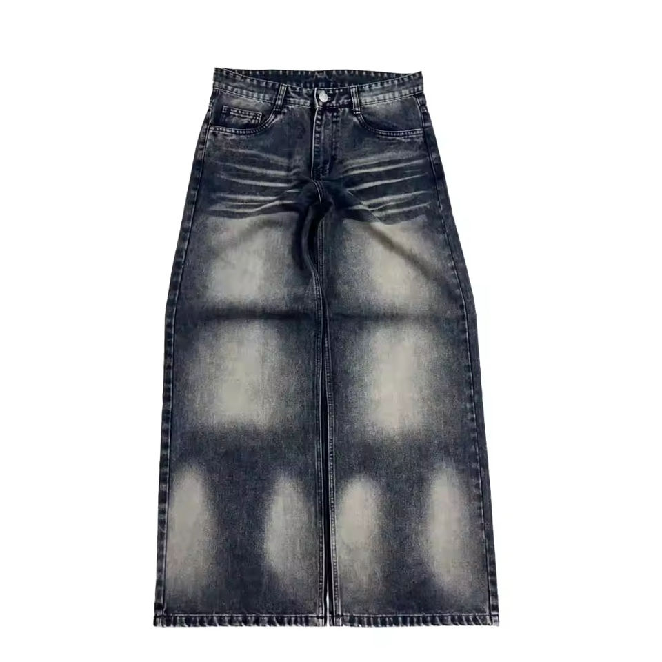 Jeans de Hombre OEM Personalizados, Lavados, con Efecto Degradado, Estilo Vintage, Casuales, Sueltos, de Cintura Media, de Mezclilla Ecológica de Alta Calidad, Talla Grande
