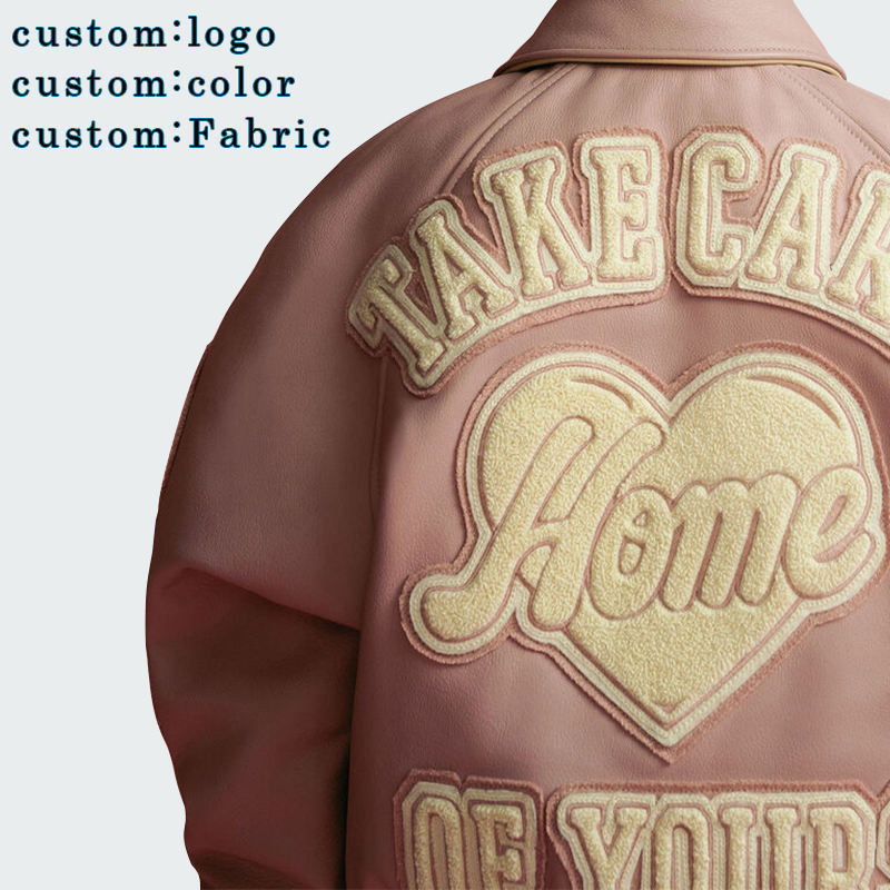 Chaqueta Bomber de Cuero con Logotipo Bordado en Chenilla Personalizada OEM, Chaquetas Varsity de Cuero Genuino para Hombre