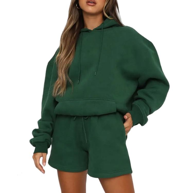 Conjunto de Sudadera con Capucha y Pantalones Cortos de Dos Piezas para Mujer, Personalizado OEM, 100% Algodón, Ecológico, con Logotipo Sublimado