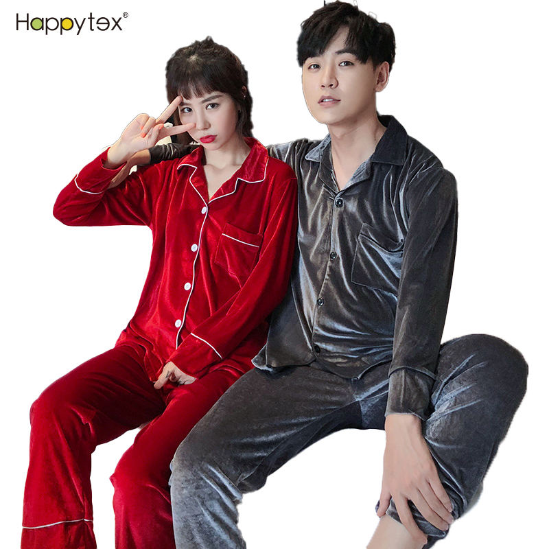 Conjunto de ropa de dormir de terciopelo para hombre y mujer, conjunto de pijama de manga larga con pantalones, color liso, personalizado, para invierno, OEM