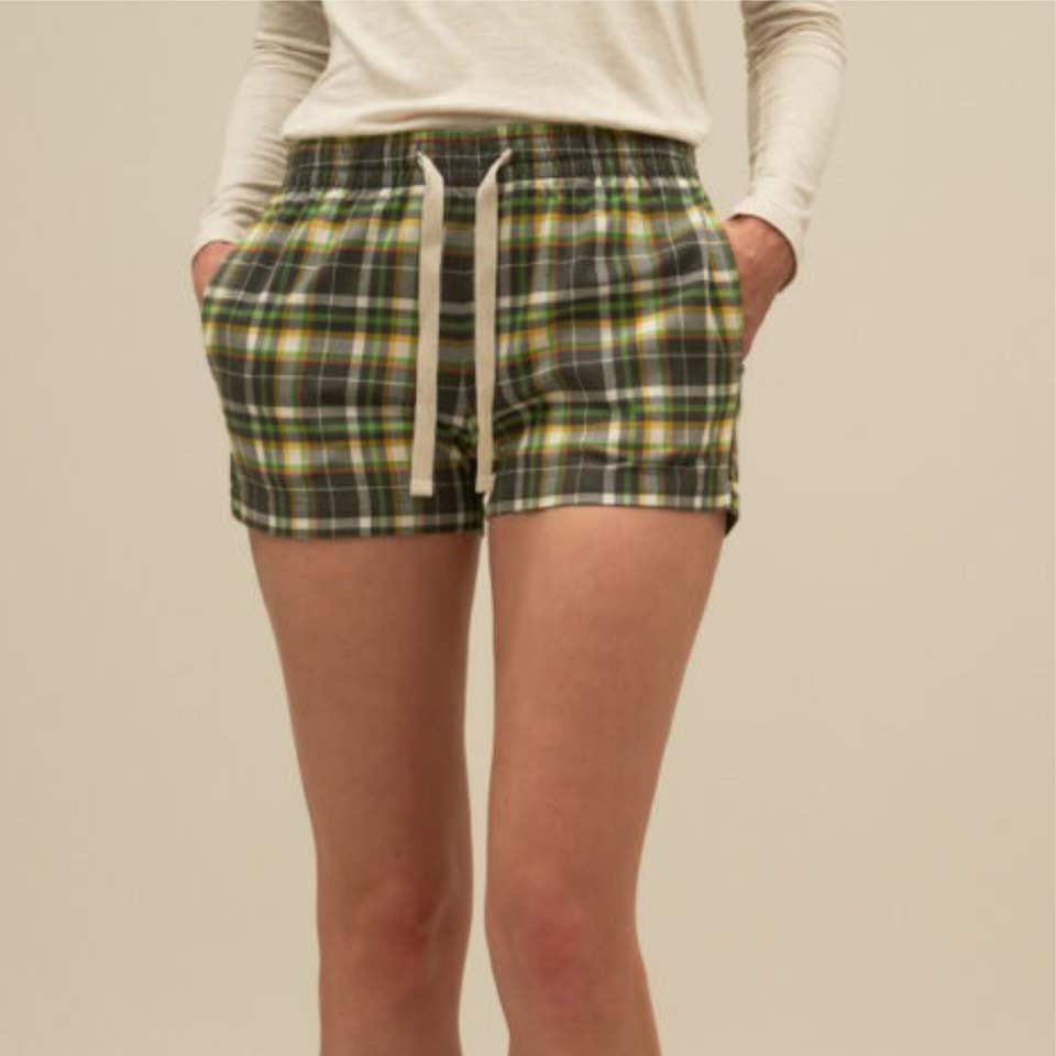 Pantalones cortos transpirables de franela OEM personalizados para mujer-algodón suave con patrón a cuadros con bolsillos y cordón