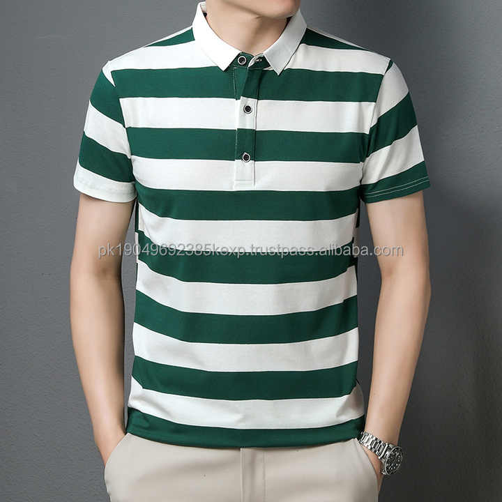 Camiseta Polo de Algodón para Hombre con Logotipo Personalizado OEM, Diseño Bordado e Impreso, a Rayas, Moderna, Informal, con Solapa y Manga Corta