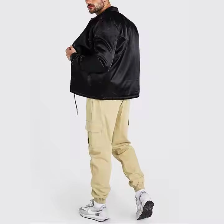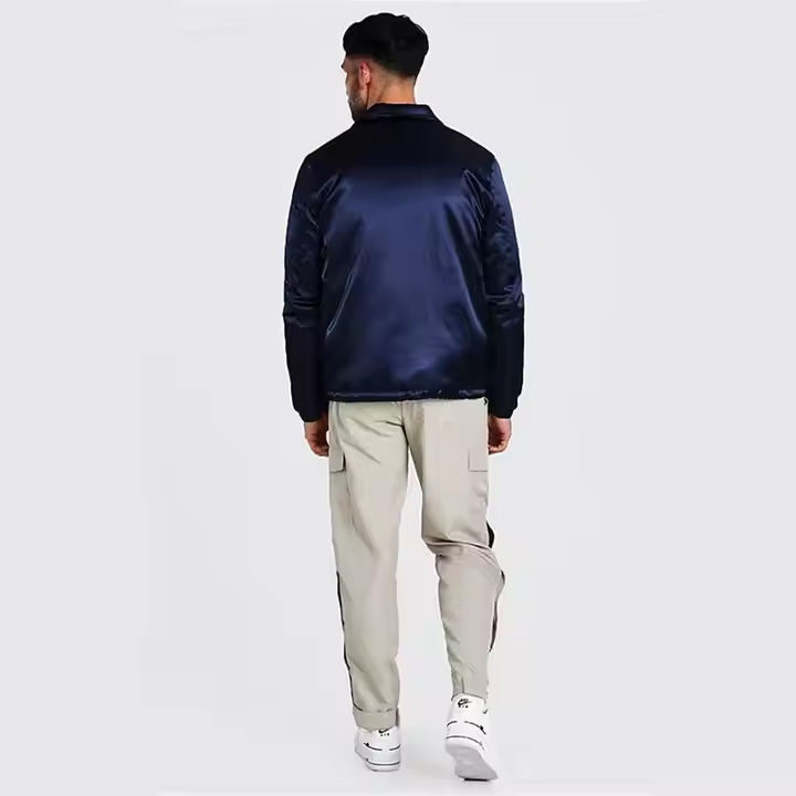 Chaqueta de Hombre con Logotipo Personalizado OEM, Estilo Urbano, Satinada, Impermeable, Transpirable, Mezcla de Lana, con Cierre de Cinturón, para Primavera, Otoño e Invierno