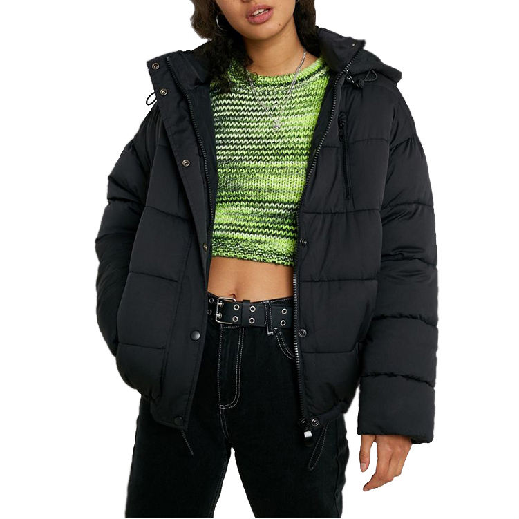Chaqueta acolchada de invierno para mujer, de color sólido, personalizada por OEM, con capucha y talla grande.