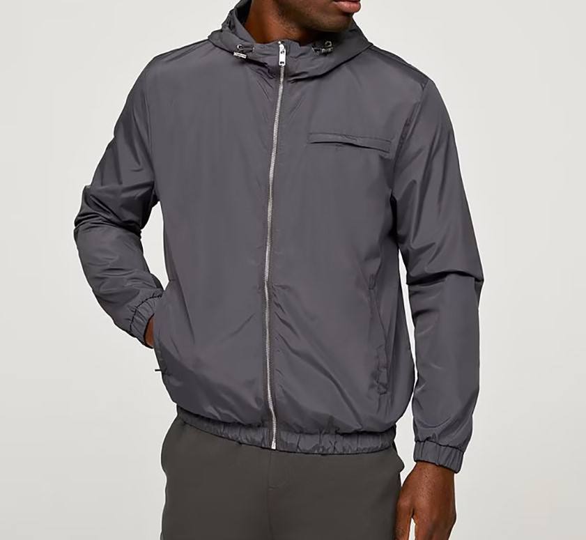 Chaqueta Cortavientos con Capucha Negra para Hombre, Impermeable y Resistente al Viento, Personalizada OEM para Actividades al Aire Libre