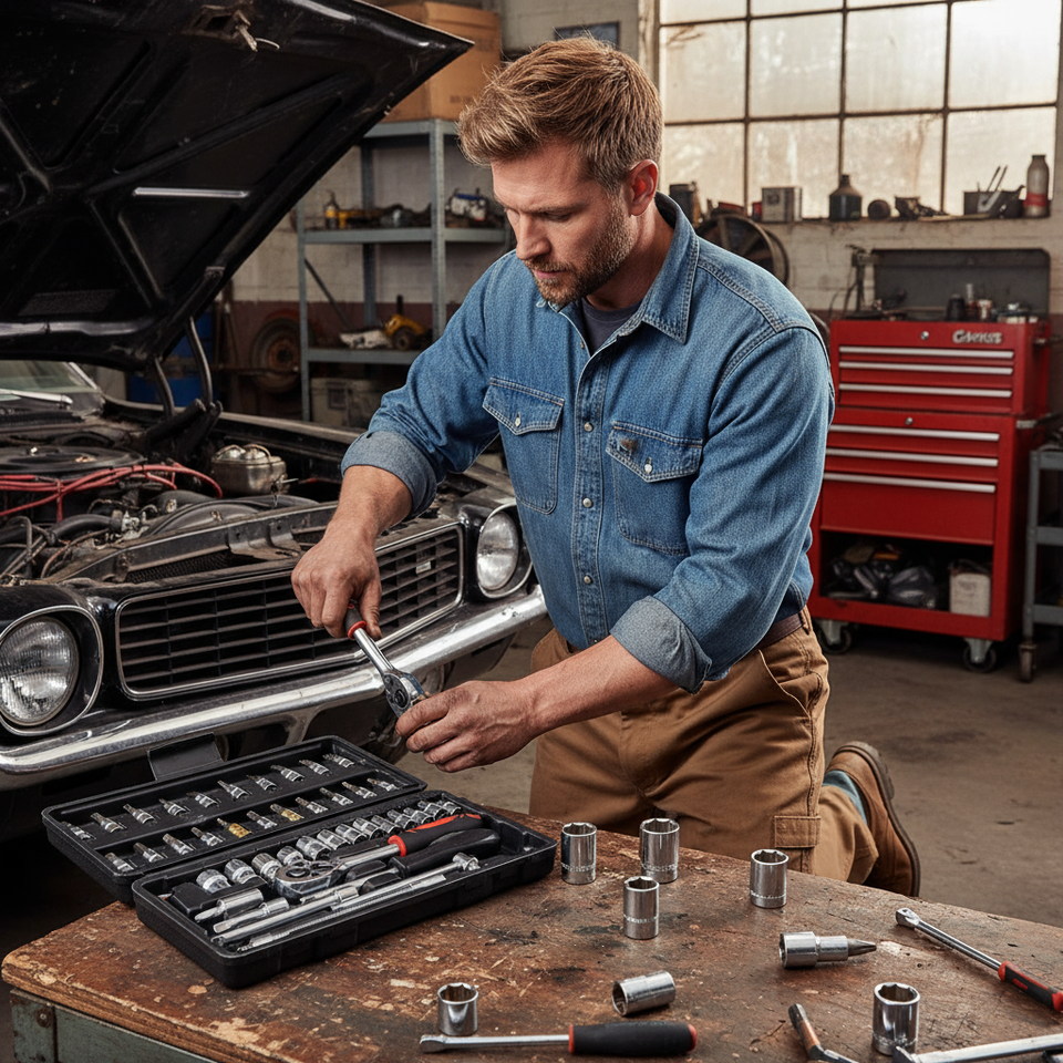 Juego de llaves de vaso con carraca