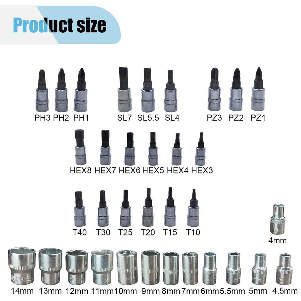 Juego de herramientas de llave de vaso pequeño personalizable OEM de 46 piezas con enchufe de broca de estuche rígido de trinquete para uso de reparación stock de MOQ bajo disponible