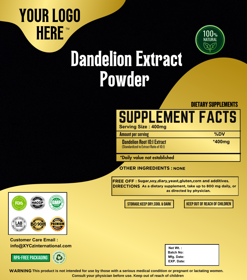 Polvo de extracto de diente de león personalizable OEM, producto a granel natural de alta calidad, cultivo salvaje, India, Etiqueta Privada