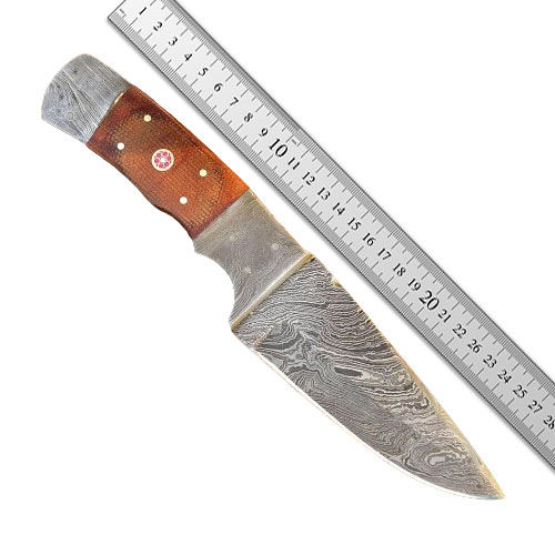 Funda de transporte de cuero personalizable OEM para cuchillo de caza de acero de Damasco forjado a mano refuerzo de acero de hueso/madera rosa para acampar