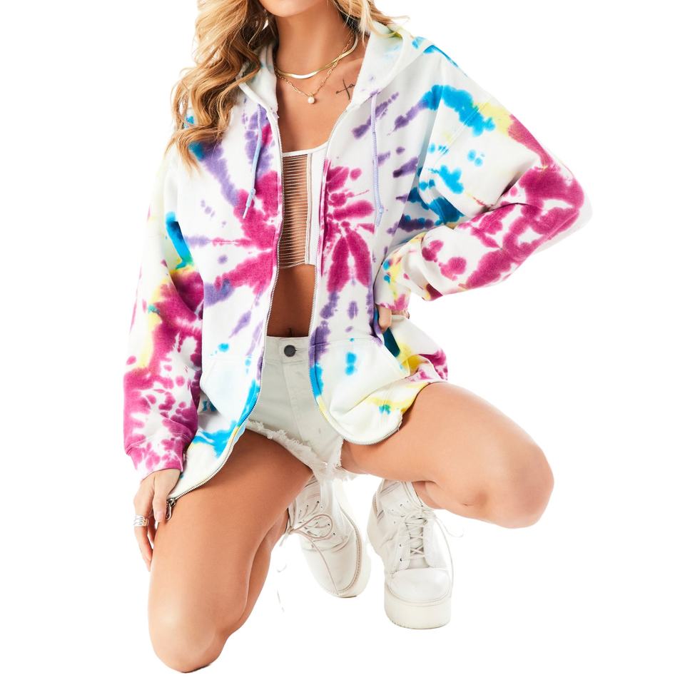 OEM personalizar el diseño hacer su propio logotipo mujeres último estilo Tie Dye impreso calle lleva sudaderas con capucha