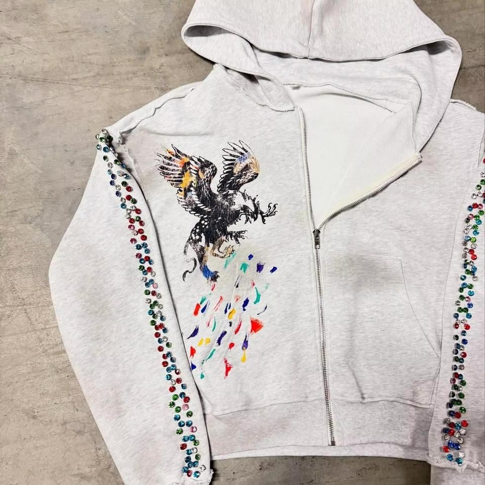 Nombre del producto:Sudadera con capucha de pedrería