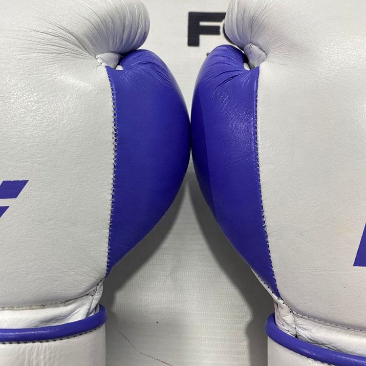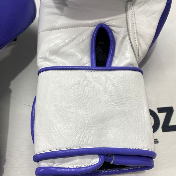 Guantes de Boxeo de Piel Genuina Morados y Blancos para Entrenamiento de Sparring, Personalizados OEM, Cierre de Correa Profesional para Muay Thai y MMA