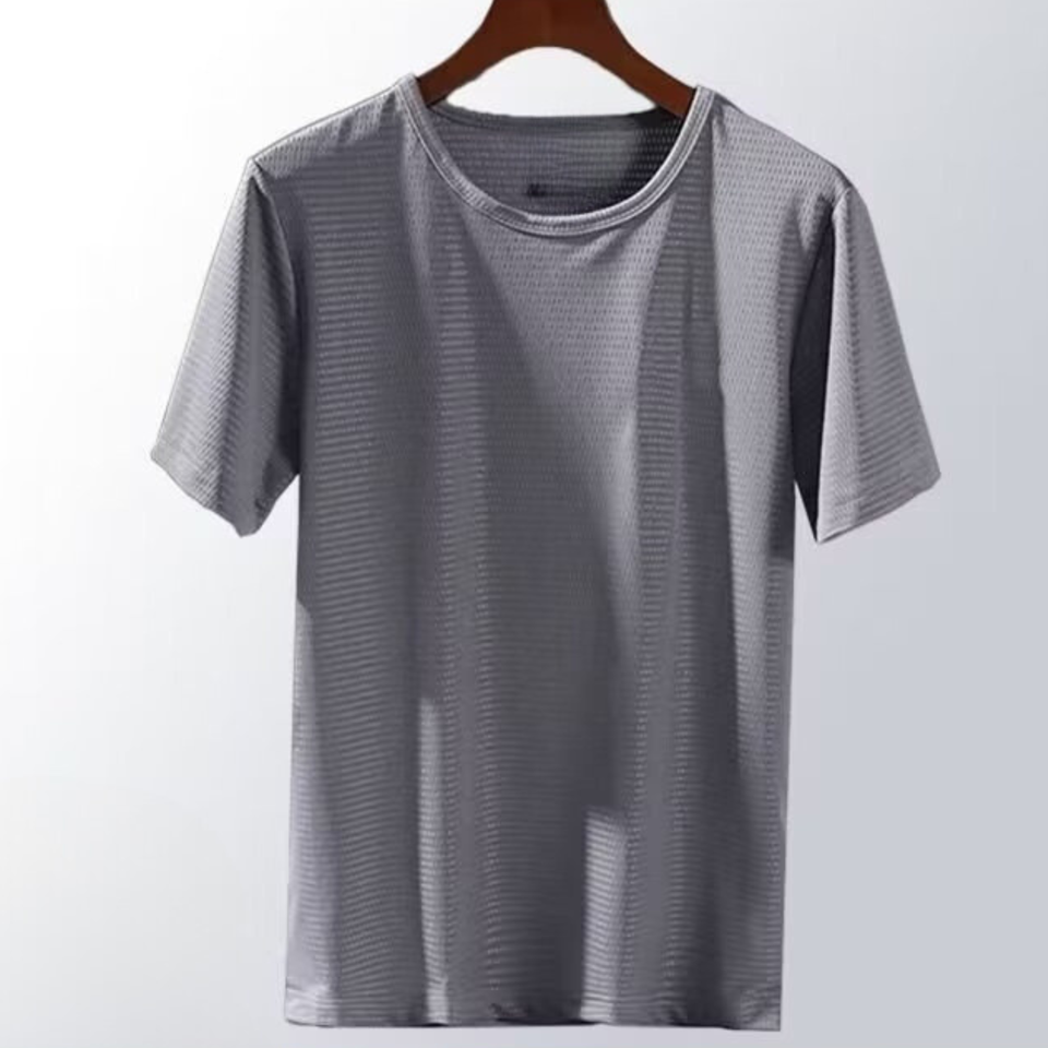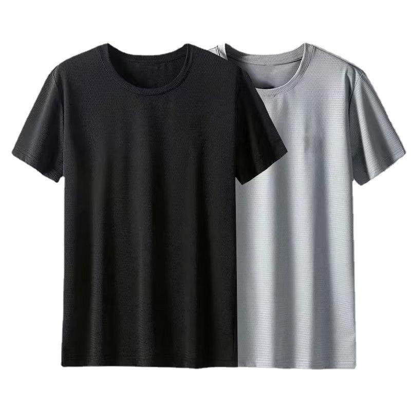 Camiseta deportiva de verano para hombre con diseño de logotipo OEM personalizado, elegante, holgada, de malla, de media manga, cuello en V, talla grande, de seda helada, informal, de punto.