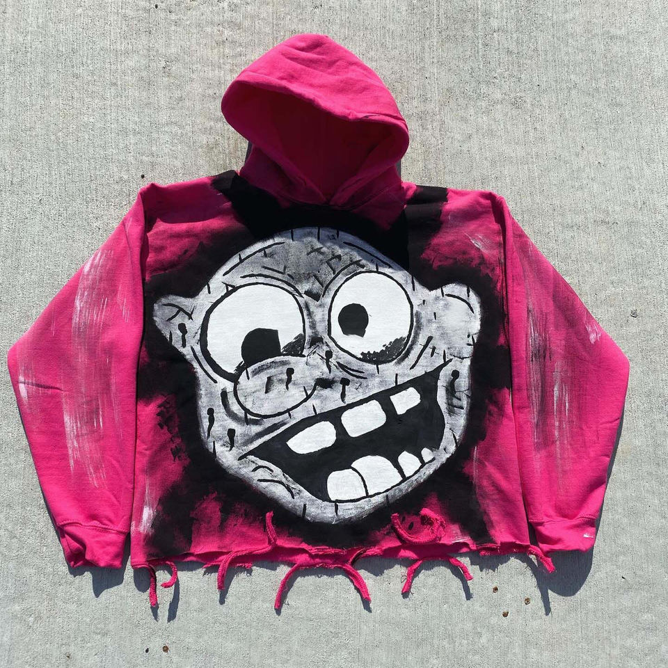 Sudadera con Capucha Corta Estilo Vintage con Estampado DTG y Logotipo Personalizado OEM para Hombre, Estilo Urbano, Dobladillo sin Rematar para Invierno
