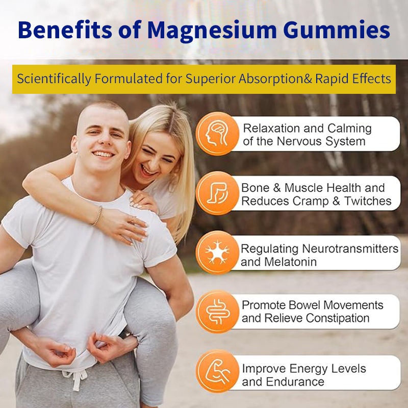 Suplemento de minerales de glicinato de magnesio personalizado OEM, gomitas estimulantes de energía para relajarse y dormir