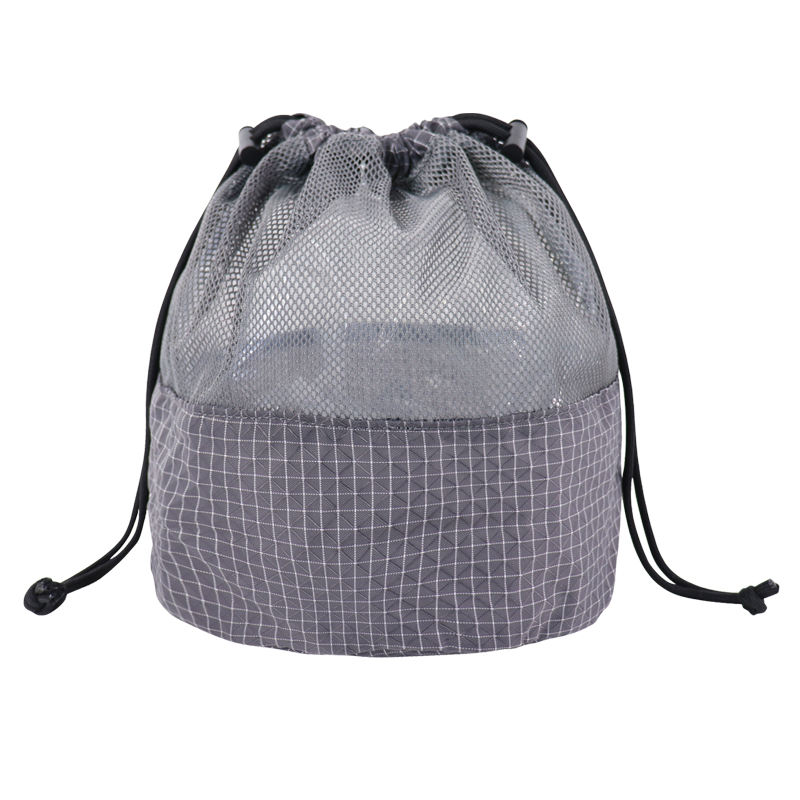 Bolsa de malla personalizada OEM con cordón, bolsa de almacenamiento transpirable para camping, organizador de equipo de tela antidesgarro, bolsa de cosméticos privada
