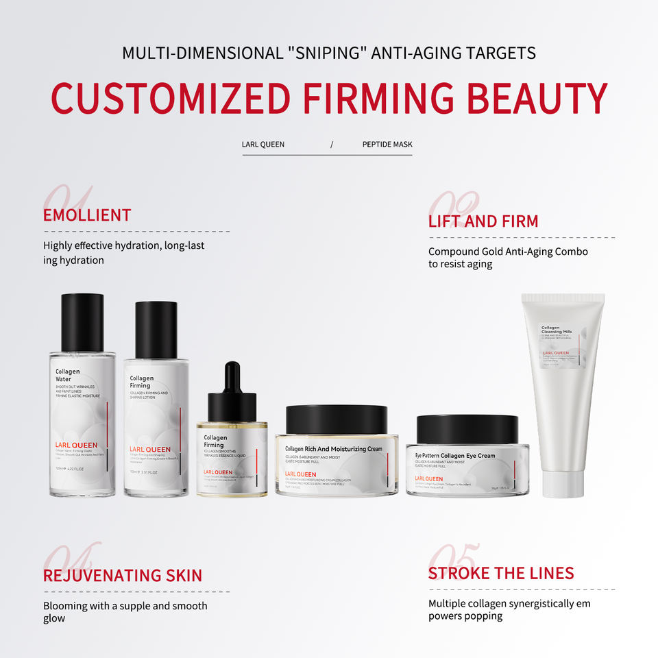 OEM etiqueta personal personalizada cuidado de la piel paquete colágeno relleno reparación reafirmante limpiador cara crema ojos serie de esencia