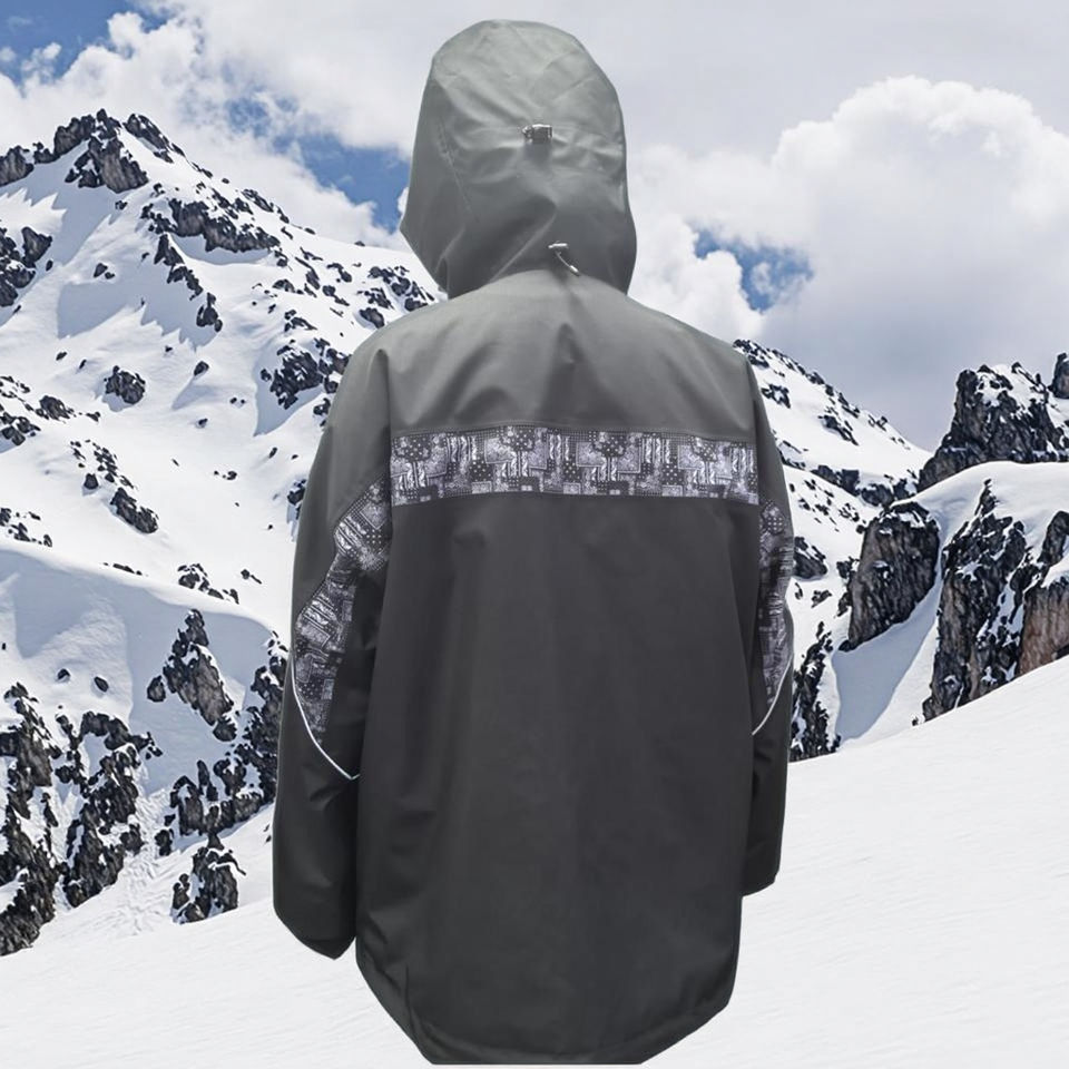 Chaqueta de esquí de talla grande personalizada OEM, chaqueta de nieve para exteriores con función de calefacción, ropa de esquí de moda negra con patrón