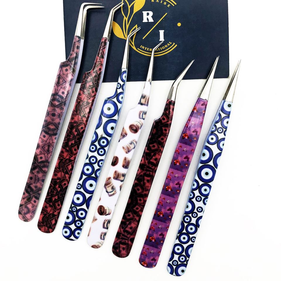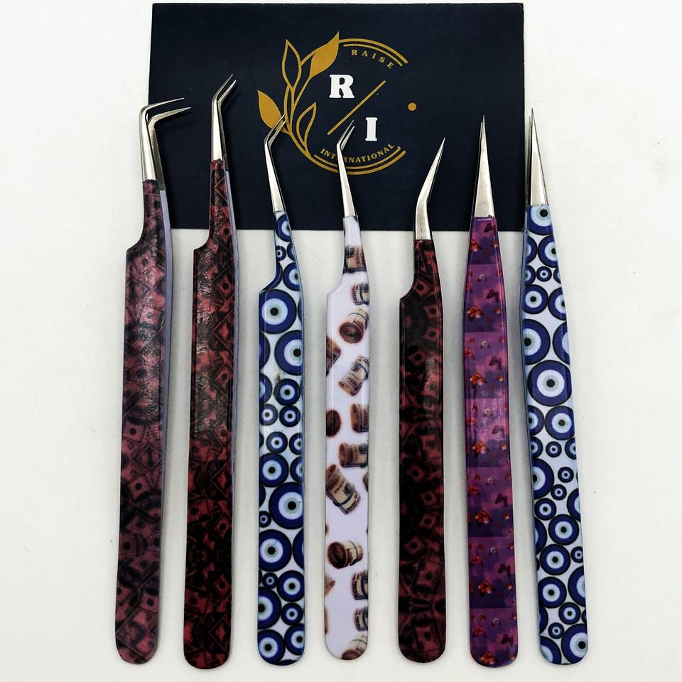 Pinzas para pestañas con punta de precisión personalizadas OEM, acero inoxidable ecológico con revestimiento de papel, ventiladores de volumen sostenibles